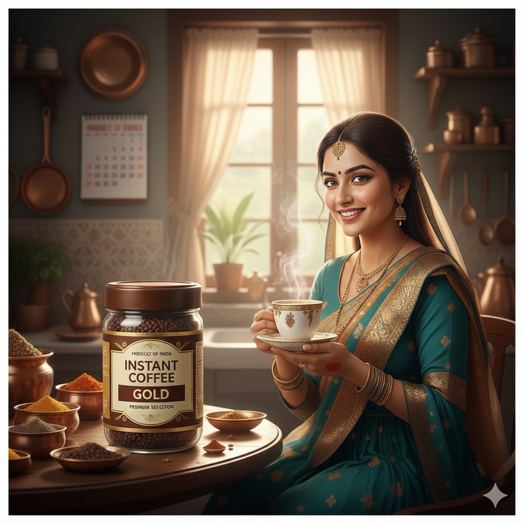 فراوری قهوه فوری (بهویژه مدلهای گلد که در هند بسیار محبوب هستند) یک فرآیند پیچیده و دقیق است تا عطر و طعم دانه قهوه حفظ شود. قهوه گلد هند معمولاً از ترکیب دانههای عربیکا و روبوستا تهیه میشود.